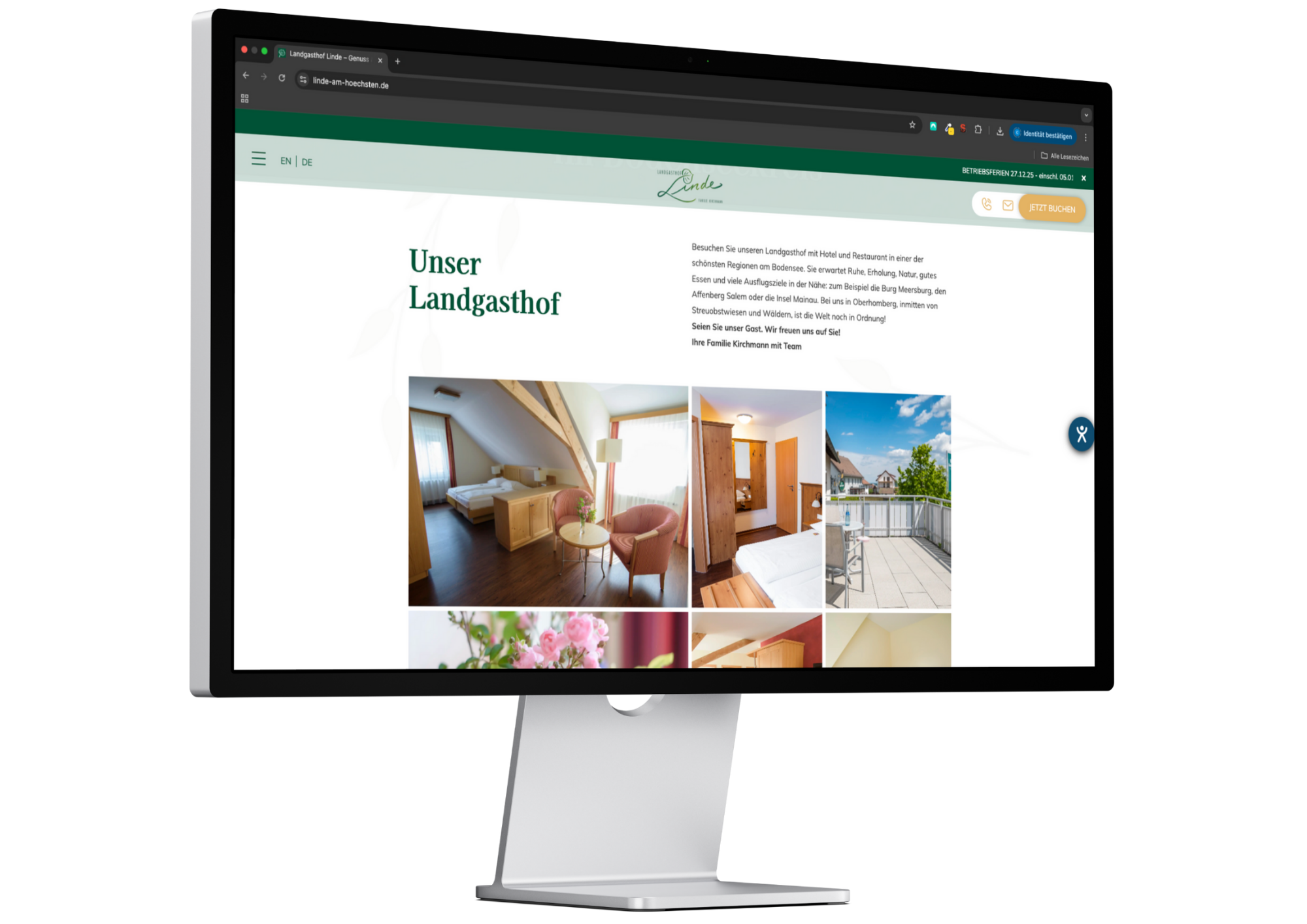 Begleite deine Gäste entlang der gesamten Guest Journey, von der ersten Suche bis zur Direktbuchung, mit unseren maßgeschneiderten Digital-Marketing-Services. Steigere deine organische Sichtbarkeit durch SEO, optimiere die lokale Auffindbarkeit mit GEO, kreiere emotionalen Content für Social Media und gewinne Direktbuchungen statt teurer Vermittlungsprovisionen durch Metasearch & Bid Management.
